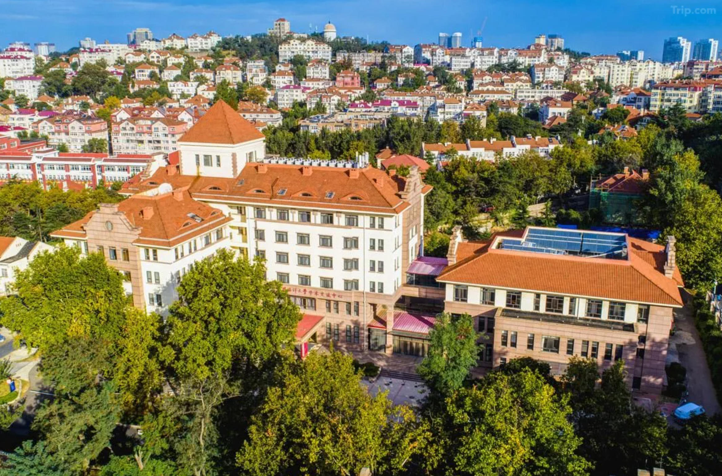 Academic Exchange Center, Ocean University of China. It is located near No.1 Bathing Beach and Eight Great Passes, the Ocean University of China Academic Exchange Center is about 7 km from downtown city. Qingdao Railway Station is accessible within five minutes by car.